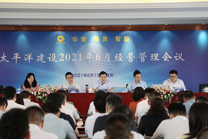 6月13日,太平洋建設(shè)2021年6月經(jīng)營管理會議在淮安順利召開,嚴(yán)昊主席出席會議作戰(zhàn)略指導(dǎo)和工作部署。太平洋建設(shè)總部核心高管,各平臺、下屬集團(tuán)董事局主席攜核心團(tuán)隊(duì)參加會議。太平洋系董事局副主席、CEO劉安琦主持會議。