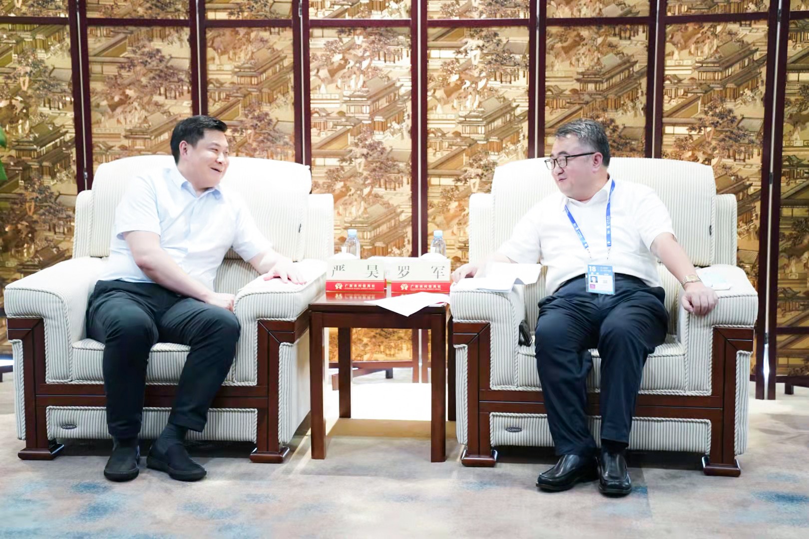 9月11日,嚴(yán)昊主席與廣西農(nóng)村信用社聯(lián)合社黨委書記、理事長(zhǎng)羅軍會(huì)談,雙方就進(jìn)一步加強(qiáng)銀企合作進(jìn)行深入交流。
