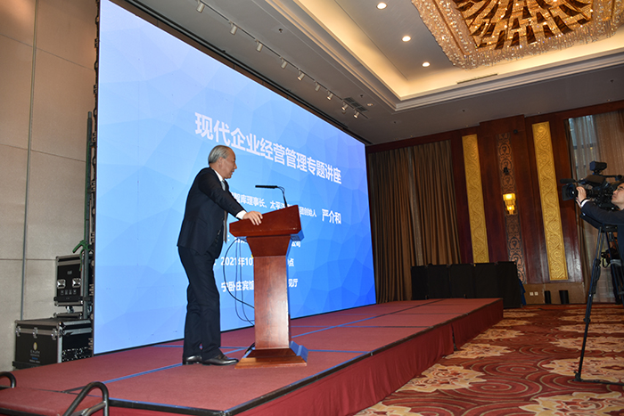 嚴介和理事長受邀為甘肅藥業(yè)投資集團總部全體員工、所屬企業(yè)中層以上干部、三級公司主要負責人以及相關合作企業(yè)負責人進行主題為“現(xiàn)代企業(yè)經(jīng)營管理”的專場授課。魏陽主持活動。