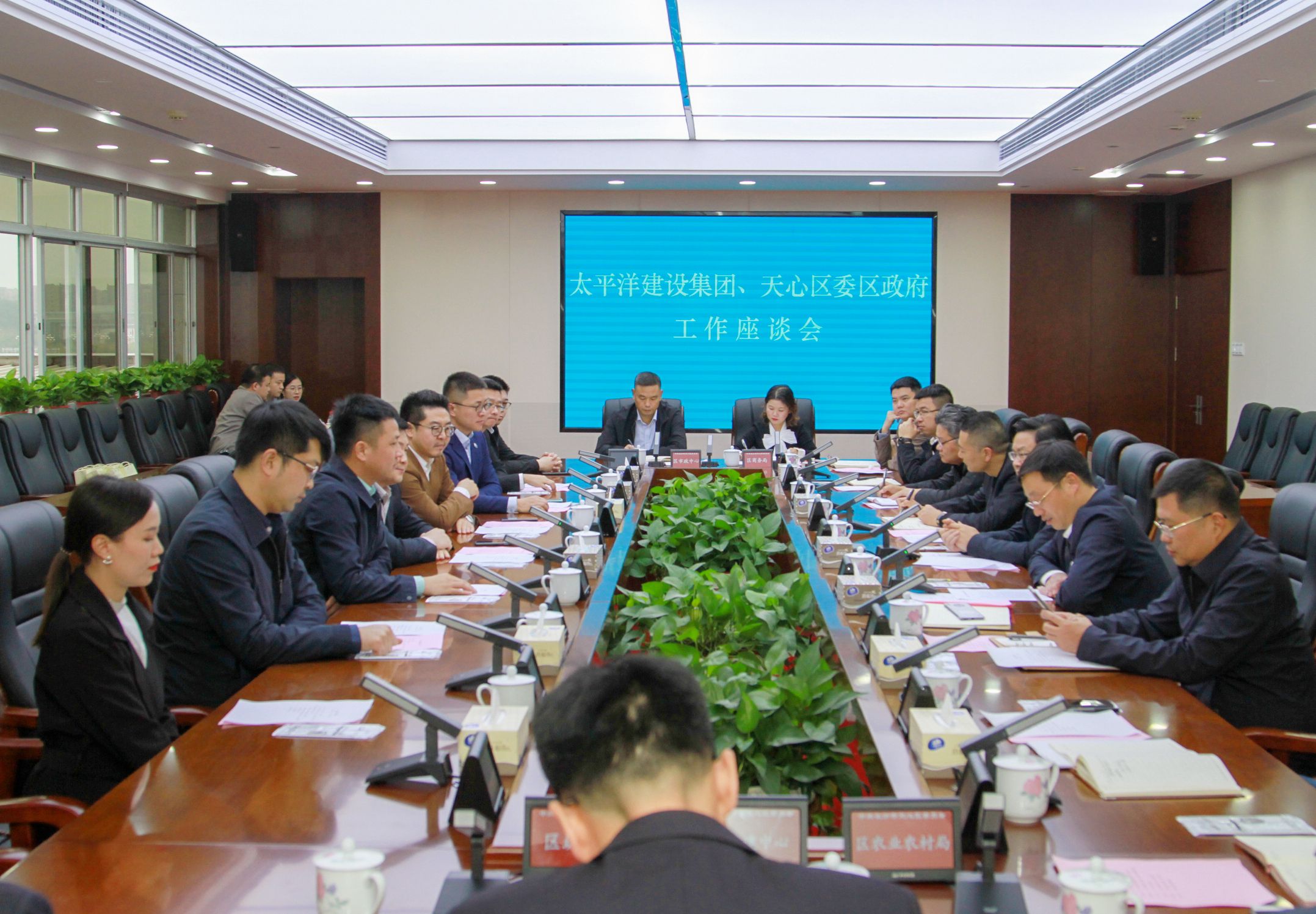 太平洋建設(shè)總裁宋少庭,太平洋建設(shè)大區(qū)總裁、太平洋水務(wù)董事局主席常偉偉,太平洋水務(wù)總裁、太平洋水務(wù)二集團(tuán)董事局主席沙波,太平洋建設(shè)經(jīng)營(yíng)中心總經(jīng)理劉非凡,太平洋水務(wù)經(jīng)營(yíng)中心總經(jīng)理雷守寧,太平洋水務(wù)區(qū)域經(jīng)理王桃玉;天心區(qū)委副書記、代區(qū)長(zhǎng)周志軍,區(qū)委常委、區(qū)政府黨組副書記、常務(wù)副區(qū)長(zhǎng)提名候選人厲波,區(qū)委常委、區(qū)委辦主任許波,區(qū)委常委、區(qū)政府副區(qū)長(zhǎng)提名候選人張浩平,區(qū)政府副區(qū)長(zhǎng)提名候選人劉正文及區(qū)委辦、區(qū)政府辦、區(qū)發(fā)改局、區(qū)住建局等領(lǐng)導(dǎo)共同參加會(huì)談。(文/圖 太平洋水務(wù)文品中心 太平洋建設(shè)文品中心)