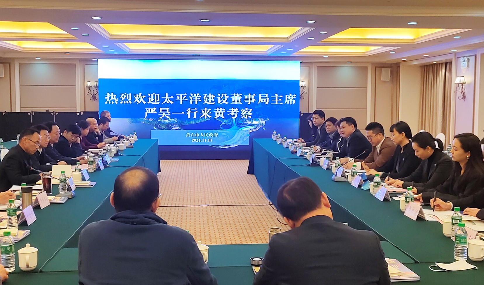 太平洋建設總裁宋少庭,中舒建設董事局主席王沫,中舒建設七集團董事局主席石又菱,未來城市副總裁章正良,太平洋建設副總裁王然,太平洋建設經營中心總經理劉非凡,中舒建設經營中心總經理王韻;黃石市政府秘書長胡敏,市招商服務中心、開發(fā)區(qū)·鐵山區(qū)主要負責人,市發(fā)改委、財政局、住建局、交通運輸局、水利和湖泊局、商務局、鄉(xiāng)村振興局、城發(fā)集團、東楚投資集團分管負責人;大冶市、陽新縣招商分管負責人;磁湖高新主要負責人參加會談。(文/圖 中舒建設文品中心)