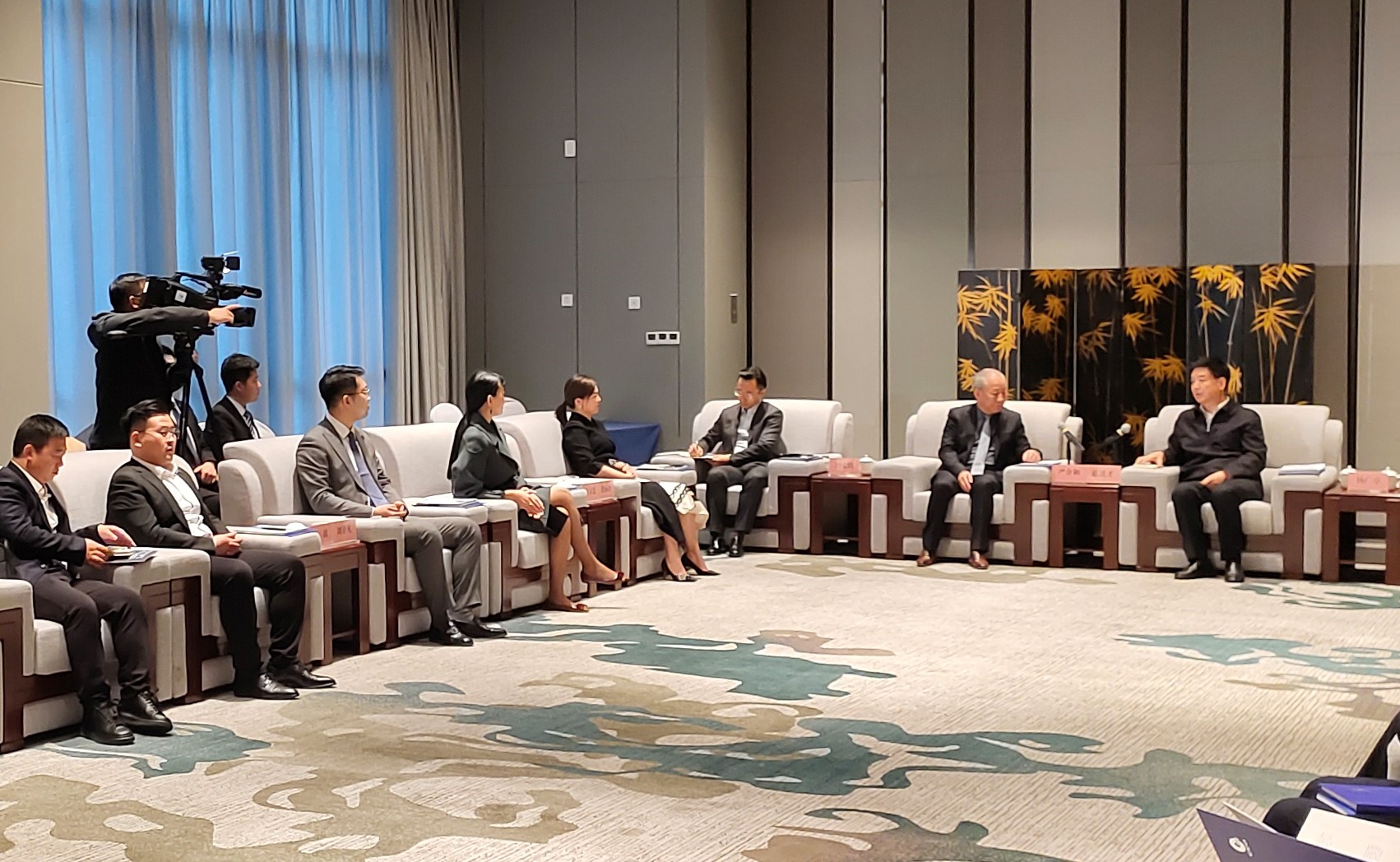 太平洋建設(shè)CEO劉安琦,港珠澳建設(shè)董事局主席殷麗冰,中舒建設(shè)七集團董事局主席石又菱,太平洋建設(shè)經(jīng)營中心總經(jīng)理劉非凡,中舒建設(shè)七集團寶雞區(qū)域負(fù)責(zé)人楊波;寶雞市政府黨組成員佘俊臣,市委秘書長許海峰,市政府秘書長陳小平、副秘書長張海峰,市住建局、市交通局、金臺區(qū)、扶風(fēng)縣、眉縣、陳倉區(qū)、蟠龍新區(qū)、市水利局、市投資(集團)有限公司主要領(lǐng)導(dǎo)參加會談。(文/圖 中舒建設(shè)文品中心)