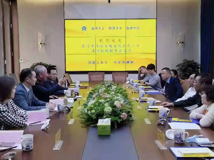 3月7日,嚴介和理事長在地球村會見廈門市同安區(qū)區(qū)長陳高潤一行,就推進雙方合作進行會談。