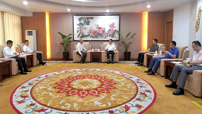 5月11日上午,嚴(yán)介和理事長應(yīng)邀在廣東東莞同東莞市城建局黨組書記、局長朱默河會(huì)談,雙方就推進(jìn)政企合作、共建東莞基建進(jìn)行交流。運(yùn)河建工董事局主席胡童、滬商建設(shè)董事局主席仉曉龍陪同。