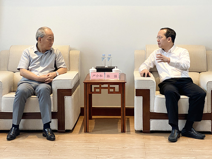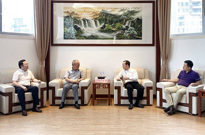 7月5日下午,嚴介和理事長同廣州城投黨委書記、董事長陳強會談,雙方進一步增加了解,增強理解。莊嚴系CEO、港珠澳建設(shè)董事局主席金亮陪同。