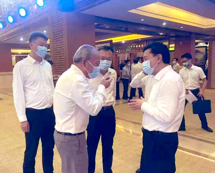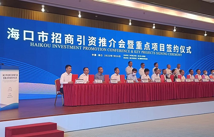 7月26日,嚴(yán)介和理事長受邀出席??谑姓猩桃Y推介會(huì)暨重點(diǎn)項(xiàng)目簽約儀式。